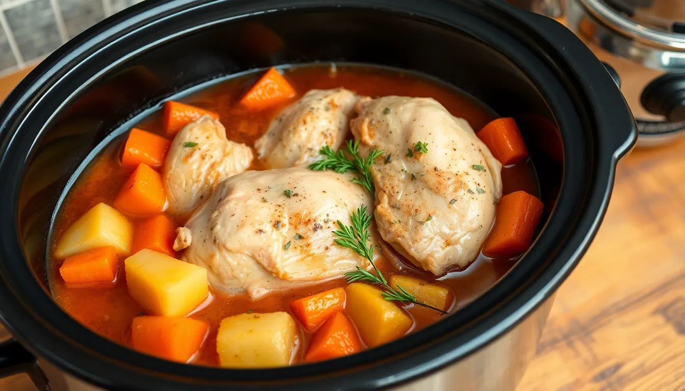 Preparation typically involves chopping vegetables and browning the chicken for added depth. Afterward, all ingredients go into the crockpot, where they’ll simmer for several hours. The result is a comforting meal that warms the heart and soul.